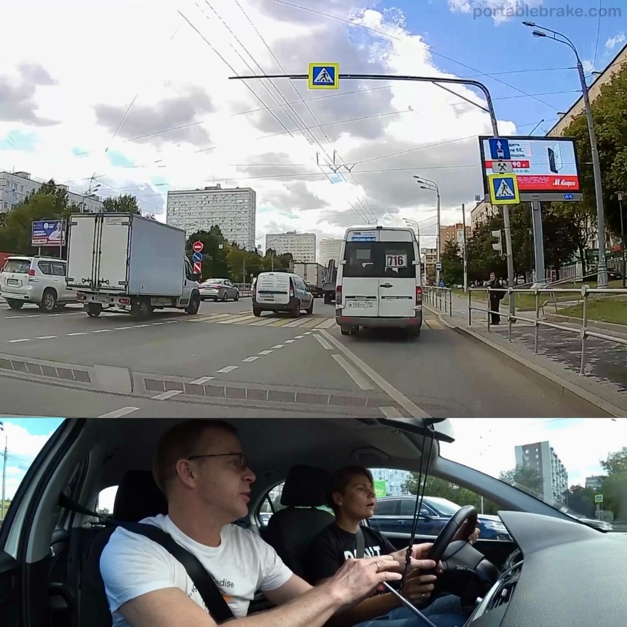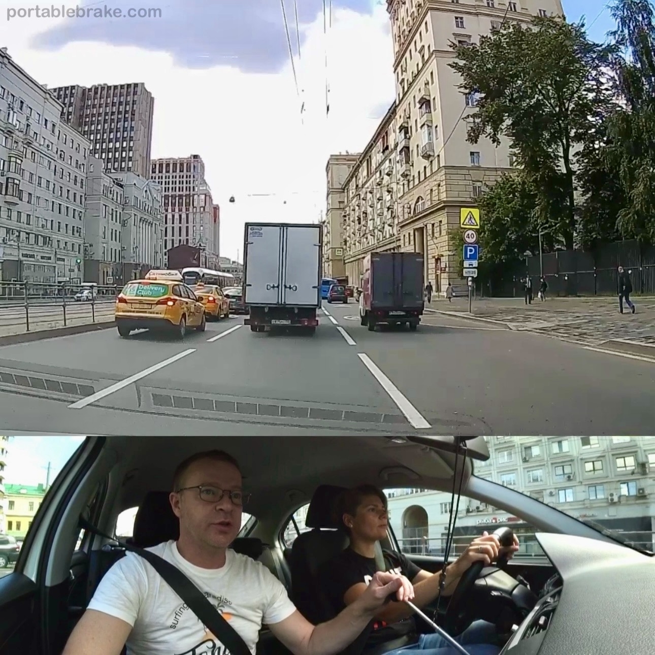 * Использование переносного тормоза является обязательным элементом обеспечения безопасности и позволяет автоинструктору осуществлять немедленное вмешательство в процесс управления автомобилем при возникновении потенциально опасных дорожных ситуаций.
